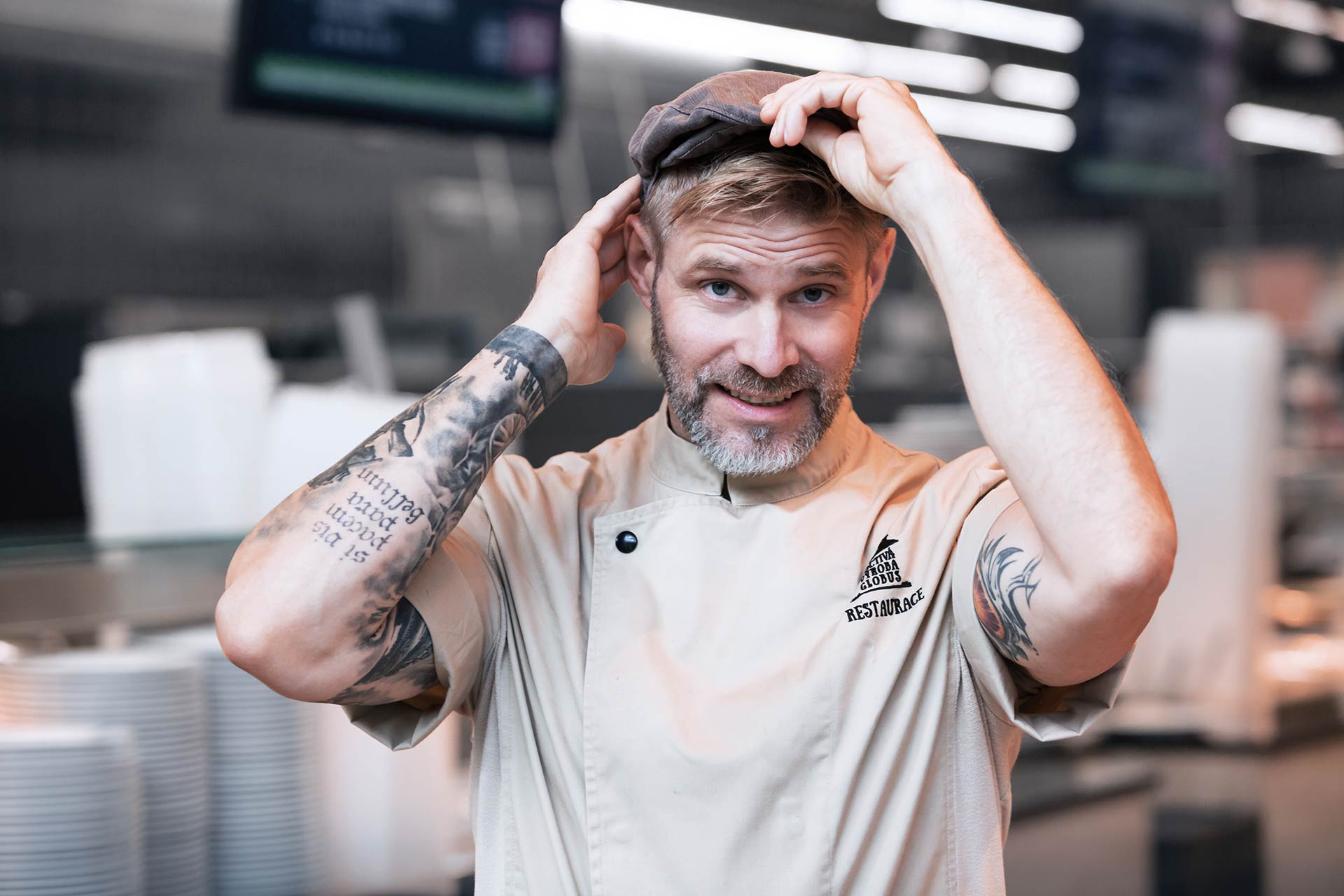 Potetovaný sympaťák pracuje jako kuchař už víc než pětadvacet let. V sedmnácti se vyučil a od té doby je pořád v oboru. Poslední tři roky tráví právě v restauraci Globus. Nejdříve začínal na minutkovém baru, kde přímo před lidmi připravoval jídlo, a pak ho hostům i vydával. Na chvíli dokonce zabrousil také do řeznictví Globusu, kde se naučil připravovat ty nejlepší steaky. Dnes pracuje v klasické velké kuchyni, odkud se jídlo nosí na výdejní a bufetové pulty. „Ať už jsem pracoval v jakékoliv části restaurace, vždycky se mi v Globusu dělalo dobře,“ říká.